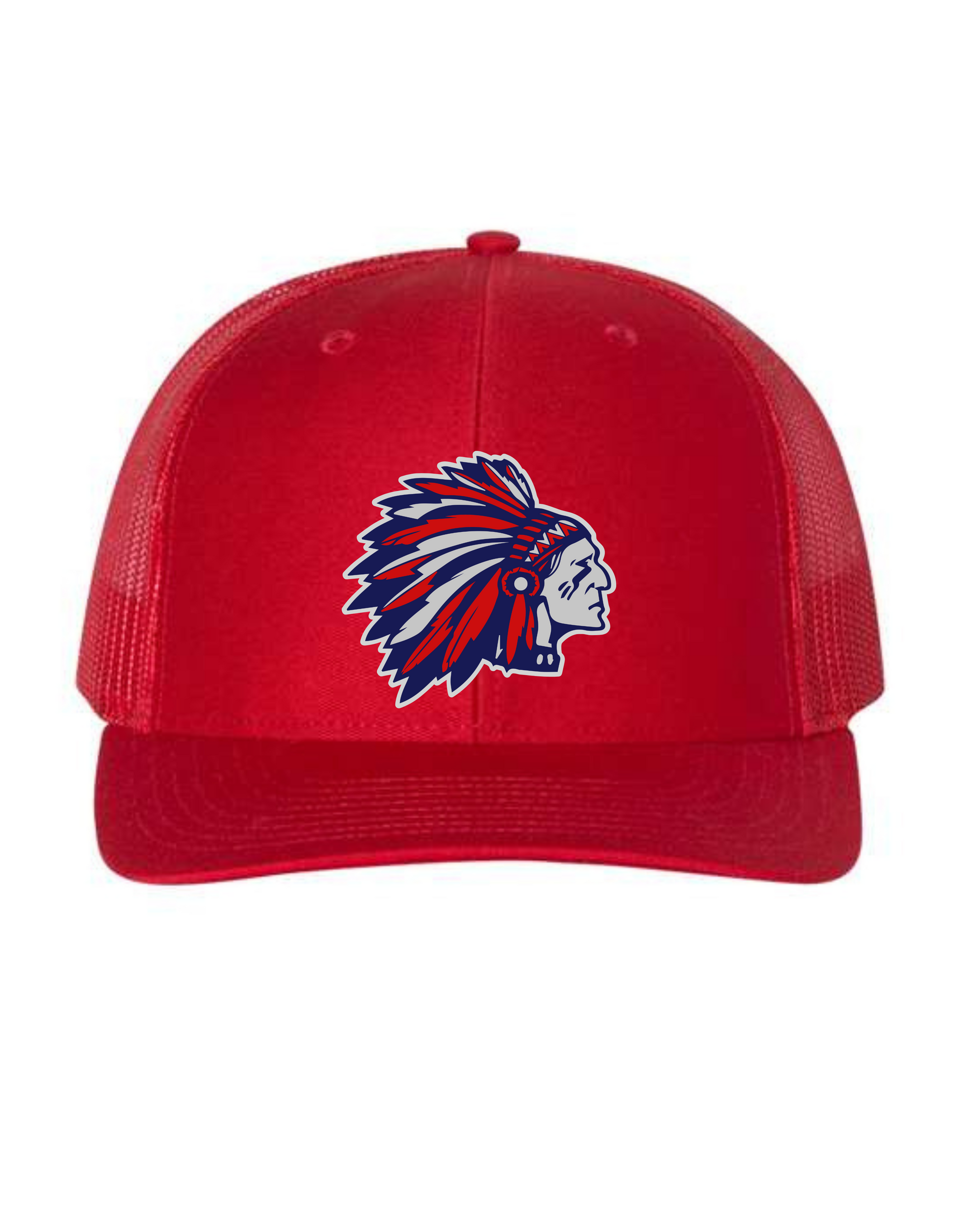 Richardson 112 Solid Red Snapback Trucker Adult OSFM with Full color Logo printed on leather patch (Tribe)
