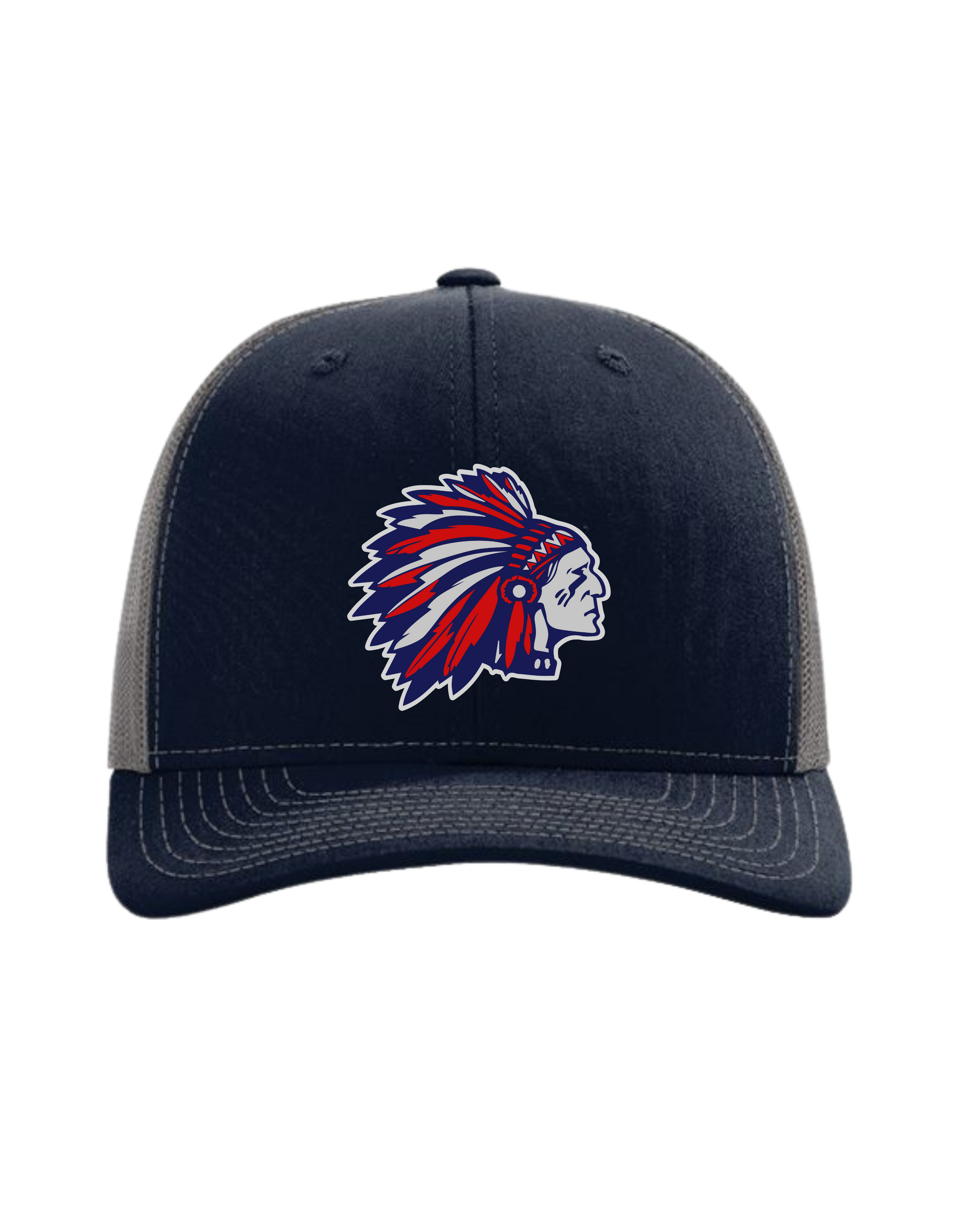 Richardson 112 Navy/Charcoal Snapback Trucker OSFM with Full color Logo printed on leather patch (Tribe)